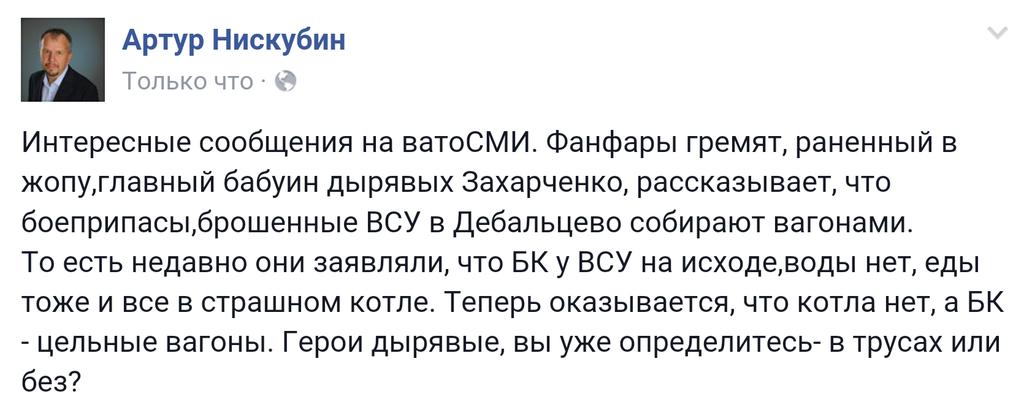 Вот жили себе люди в Дебальцево, были у них дома и квартиры, на которые они копили несколько лет, и вот теперь ничего этого нет. Потому что пришли русские и сказали "Дебальцево - это наш, русский город, а значит мы можем делать с ним все, что захотим". Не нравится что твой дом разрушат, а тебя убьют? Значит ты укроп, фашист и продался Америке.